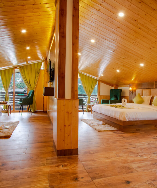 Our Family Suite is well connected with a Balcony with each room to enjoy the magnific views of Manali, Hamta View. Rooms are fully equipped with minibars for midnight cravings, electric kettles for fresh morning coffee, hair dryers, LED TVs in each room, and access to high-speed internet. Room dining is also available for our guests.