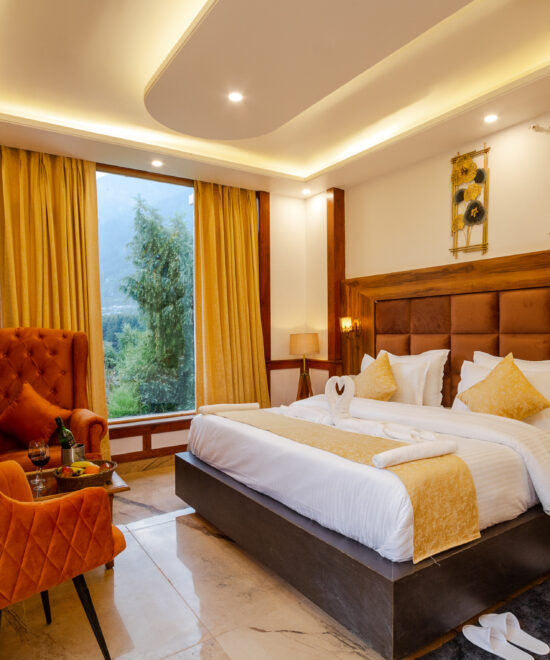 Experience the magical Manali from our luxurious rooms offering fascinating views. Our Super Deluxe Room is equipped with all 3-star amenities and a balcony to enjoy the panoramic Apple Orchards view of Manali.