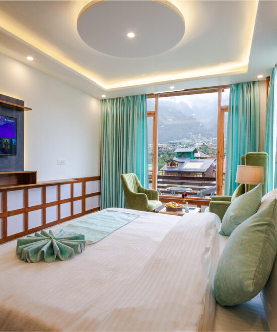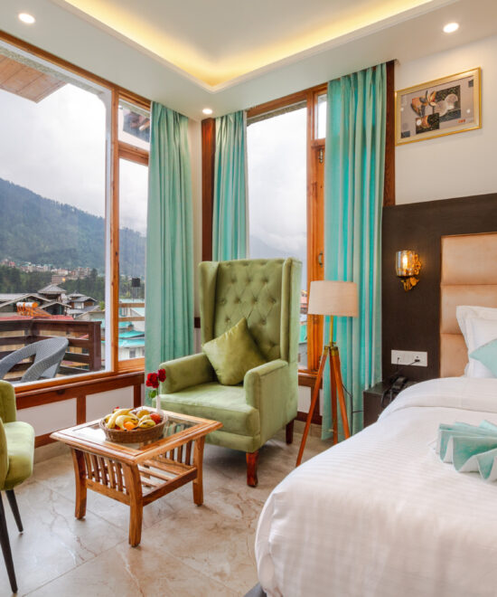 Experience the magical Manali from our luxurious rooms offering fascinating views. Our Super Deluxe Room is equipped with all 3-star amenities and a balcony to enjoy the panoramic Pir Panjal of Manali.